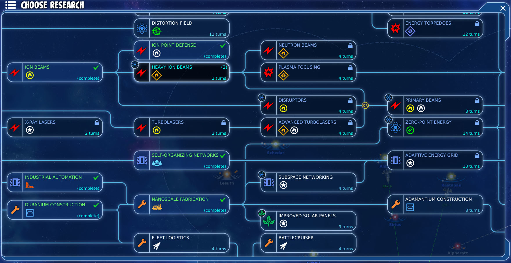 im Forschungsmenue muss es die möglichkeit geben den Forschungstree zu sehen, so das der Spieler sehen kann was muss er in wecher reihenfolge erforschen um etwas zu bekommen.